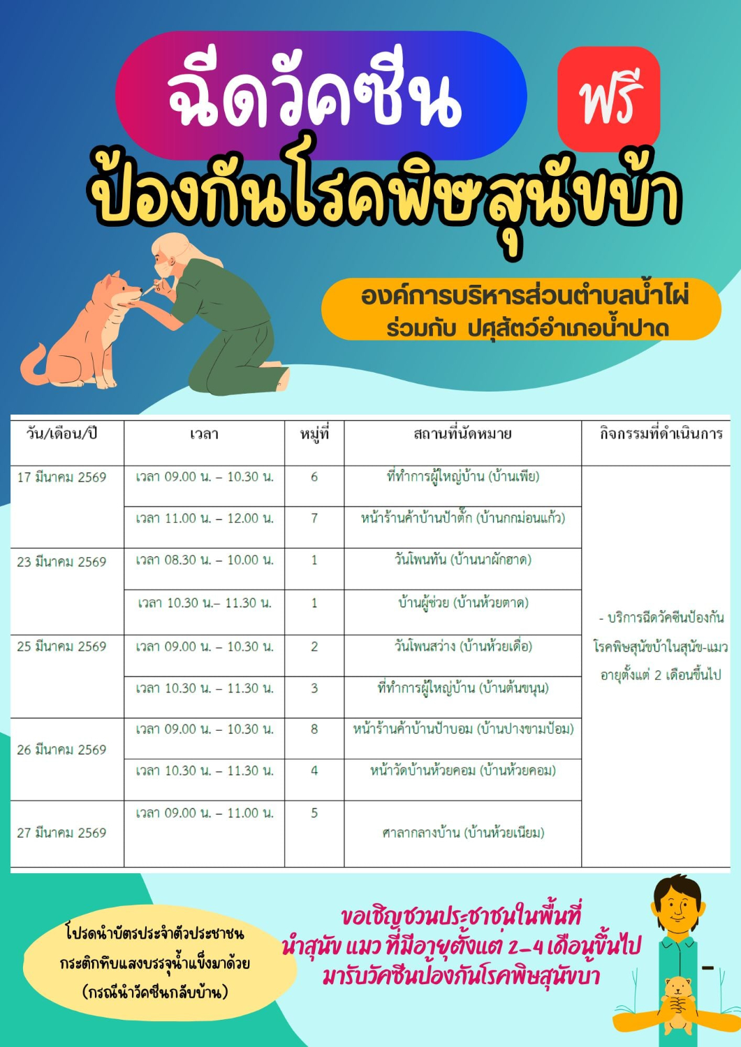 ประชาสัมพันธ์ แผนการฉีดวัคซีนโรคพิษสุนัขบ้า ประจำปี 2569