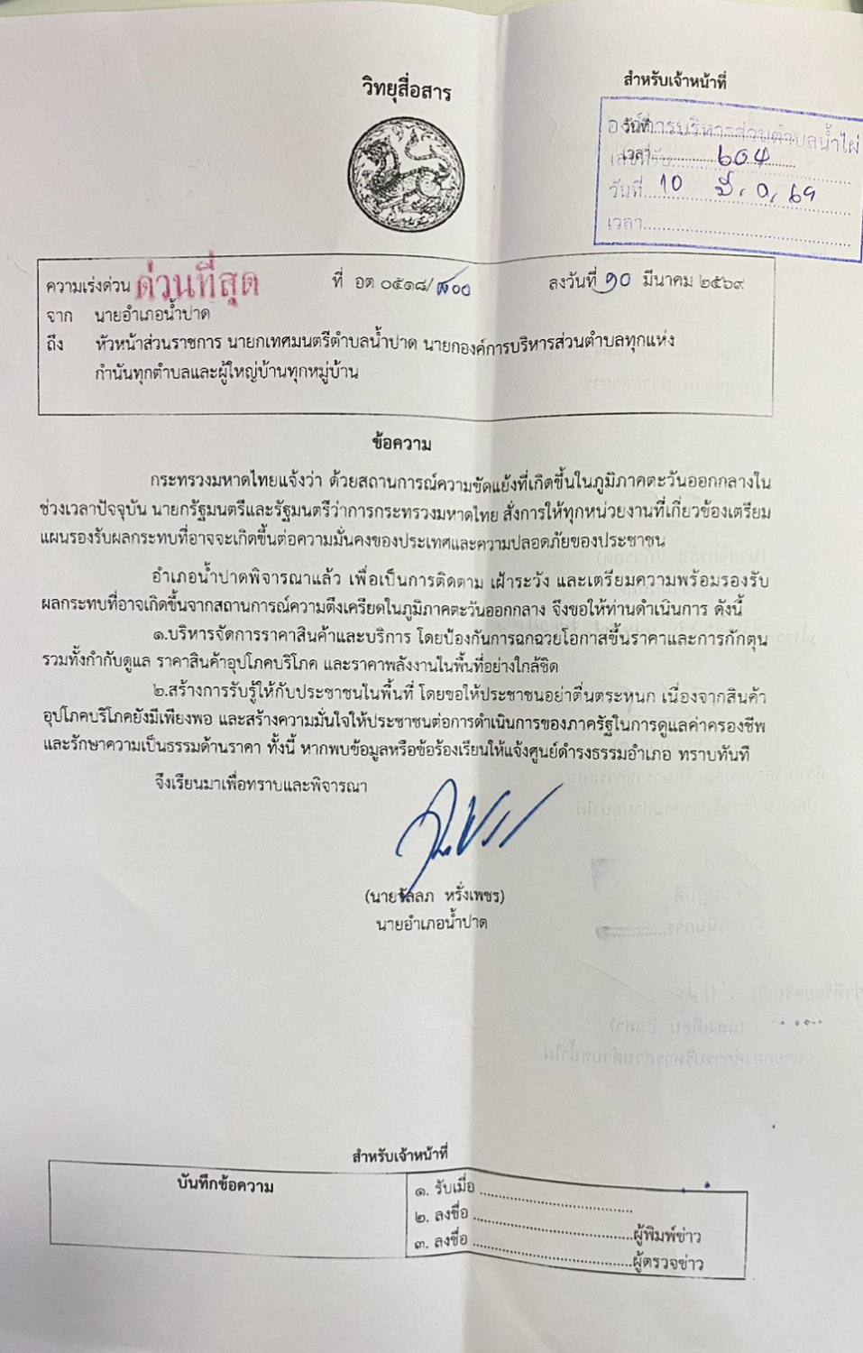 ประชาสัมพันธ์ การติดตาม เฝ้าระวัง และเตรียมความพร้อมรองรับผลกระทบที่อาจเกิดขึ้นจากสถานการณ์ความตึงเครียดใจภูมิภาคตะวันออกกลาง