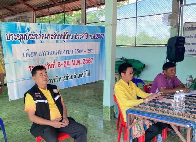 นายชาวิสิทธิ์ ขิงหอม นายกองค์การบริหารส่วนตำบลน้ำไผ่ ลงพื้นที่ หมู่ 4 บ้านห้วยคอม จัดประชุมประชาคมระดับหมู่บ้าน