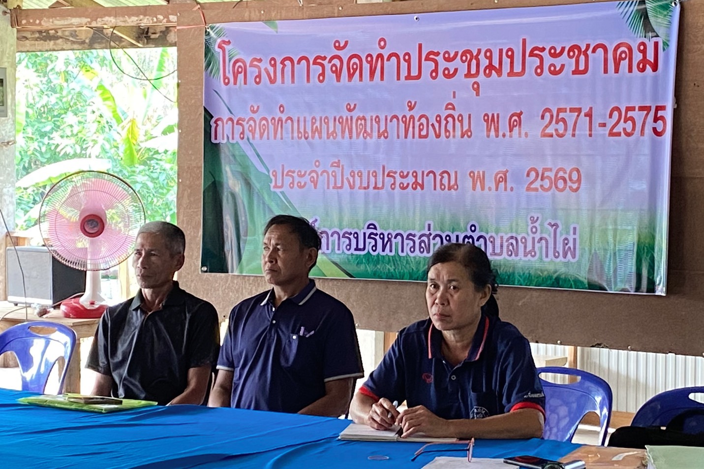 วันที่ 3 เมษายน 2569 เวลา 08.30 น. ว่าที่ร้อยตรีหญิงแสงเดือน อินสา นายกองค์การบริหารส่วนตำบลน้ำไผ่ มอบหมายให้นายเพิง ซ้อมจันทา ร้องนายกองค์การบริหารส่วนตำบลน้ำไผ่ พร้อมนายจักรธัช แก้วรอด หัวหน้าสำนักปลัด รักษาราชการแทนปลัดองค์การบริหารส่วนตำบล และเจ้าหน้าที่ ลงพื้นที่ หมู่ 3 บ้านต้นขนุนจัดประชุมประชาคมจัดทำแผนพัฒนาท้องถิ่น พ.ศ. 2571 - 2575 ประจำปีงบประมาณ 2569