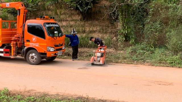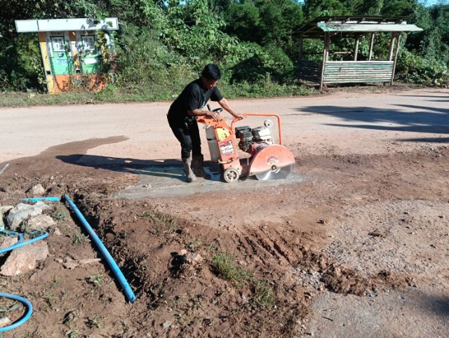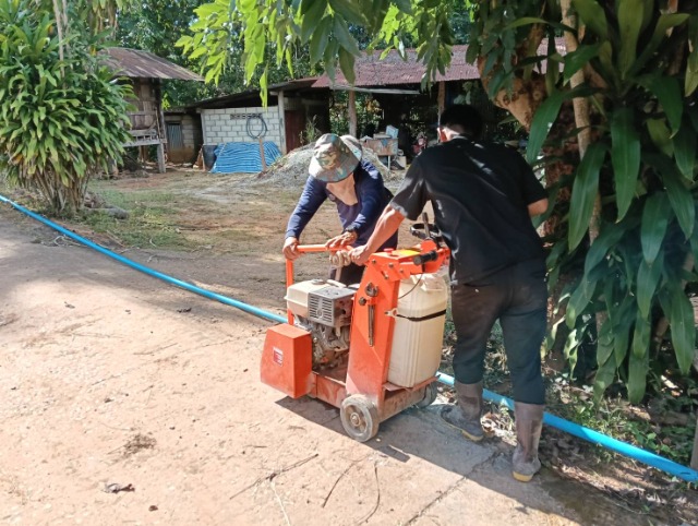 ให้บริการเครื่องตัดถนนคอนกรีต หมู่ 5 บ้านห้วยเนียม เพื่อวางระบบท่อน้ำประปาหอถังสูงโซนบ้านใหญ่และบ้านน้อย