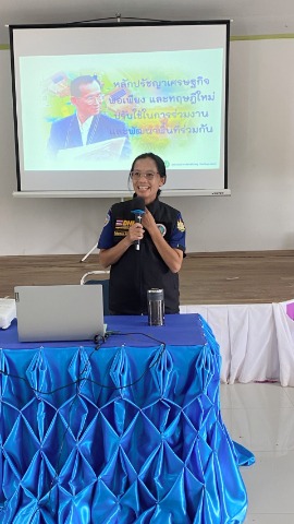 โดยมี นางวิปัสสยานันท์ ตั้งจิตวัฒนะ ตำแหน่ง นักวิชาการสิ่งแวดล้อม ให้ความรู้เรื่องหลักปรัชญาเศรษฐกิจพอเพียง