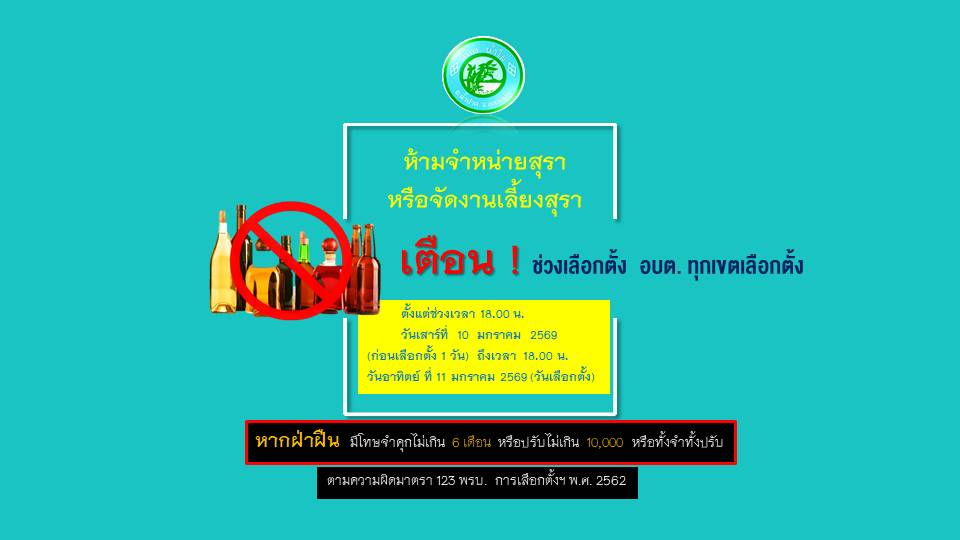 ประชาสัมพันธ์ ห้ามจำหน่ายสุราหรือจัดงานเลี้ยงสุรา