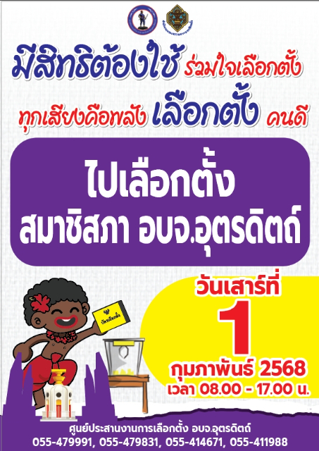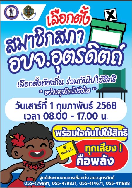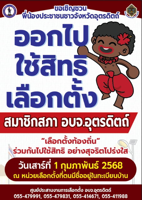 ประชาสัมพันธ์ เชิญชวนออกไปใช้สิทธิเลือกตั้งสมาชิกสภาองค์การบริหารส่วนจังหวัดอุตรดิตถ์