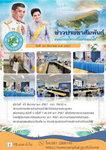 เมื่อวันที่ 23 ธันวาคม พ.ศ. 2567 เวลา 09.00 น. สภาองค์การบริหารส่วนตำบลน้ำไผ่ ได้ดำเนินการประชุมสภา สมัยสามัญ สมัยที่ 4 ครั้งที่ 1 ประจำปี พ.ศ. 2567